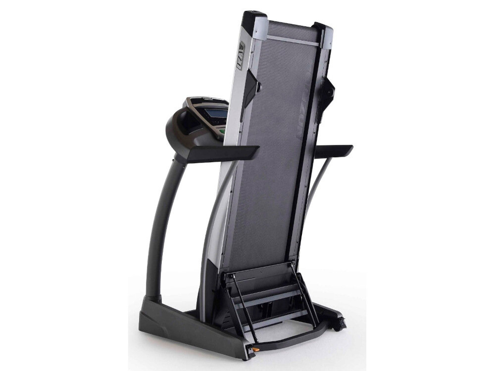 Bieżnia została wyposażona w system FEATHER LIGHT FOLDING. Oznacza to, że rama powierzchni biegowej jest składana, dzięki czemu oszczędzasz miejsce podczas przechowywania. Rama została wyposażona w silne siłowniki gazowe, które pomagają złożyć blat do pionu. Dodatkowo siłowniki zabezpieczają powierzchnię biegową przed uderzeniem w podłoże co jest bardzo bezpieczne dla Ciebie, sprzętu i podłogi pomieszczenia.