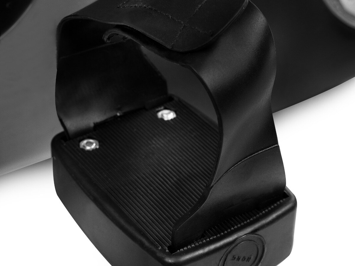 Rowerek został wyposażony w antypoślizgowe pedały, dodatkowo zabezpieczone paskami mocującymi, dzięki czemu stopa podczas ćwiczeń nie przesuwa się i bezpiecznie trzyma się na miejscu. Dzięki temu to świetne rozwiązanie także dla osób w trakcie rehabilitacji oraz dla starszych.